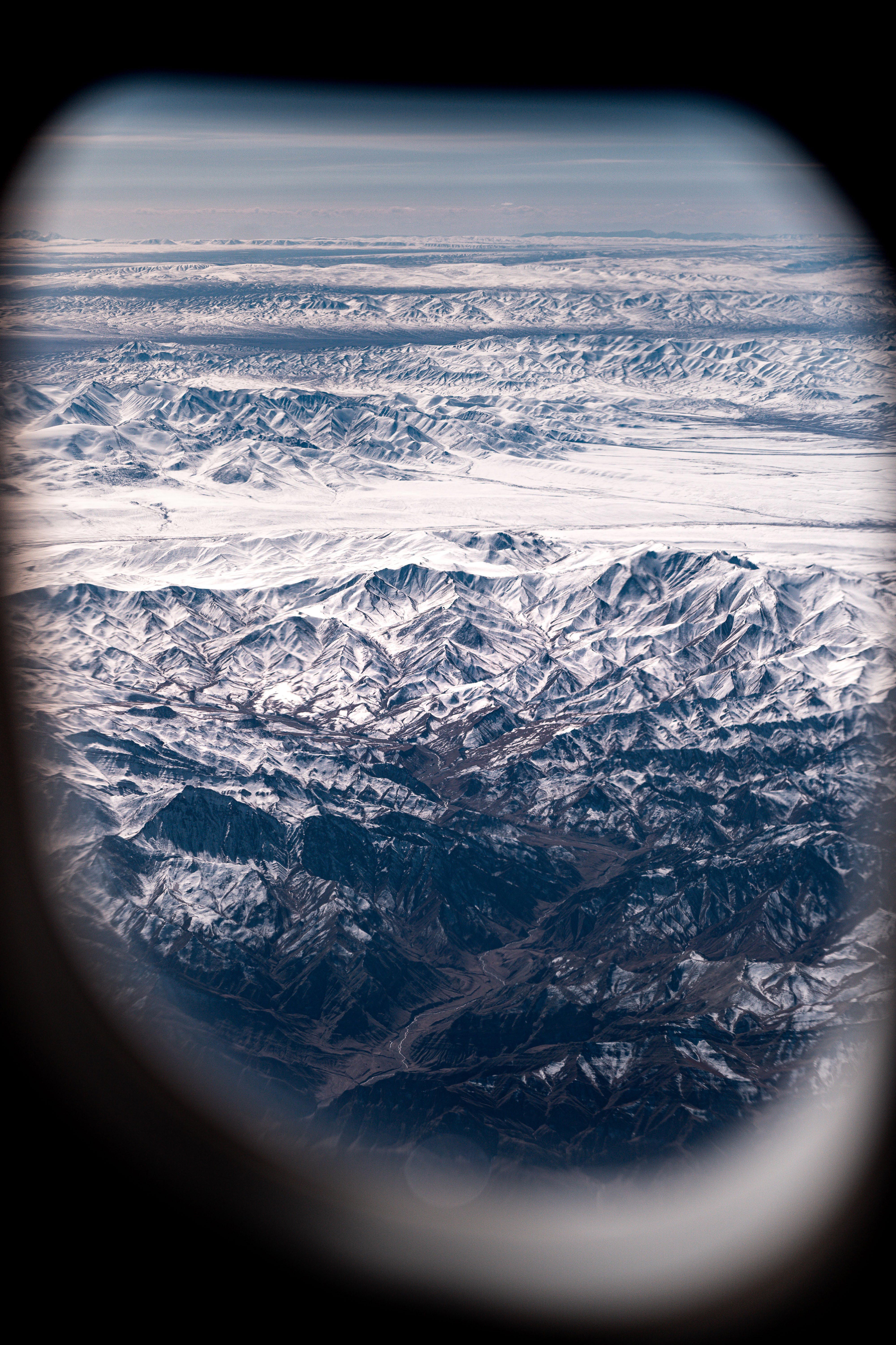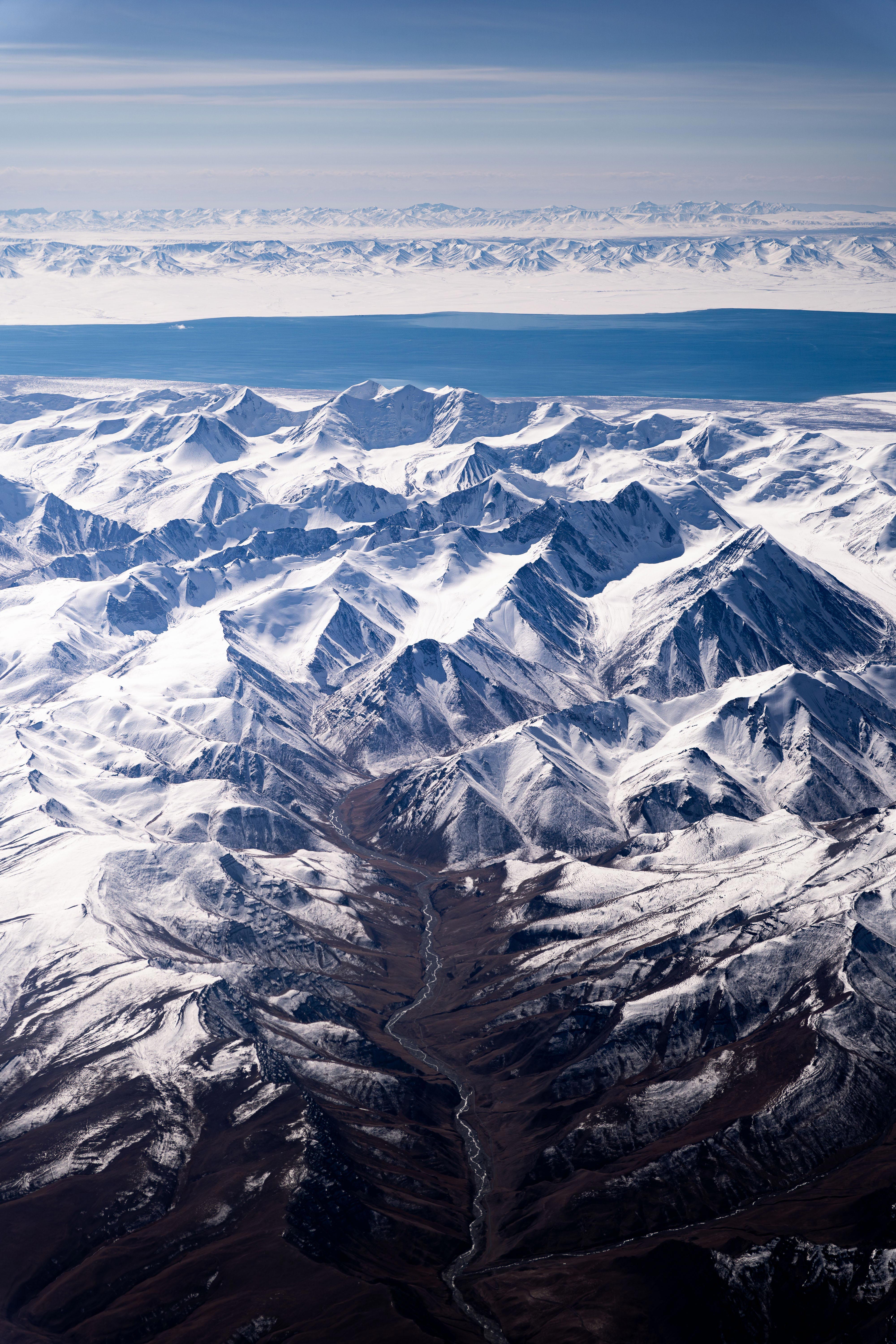 新疆出差途中,飞机上欣赏到的青海境内宁静的雪山与高原湖泊