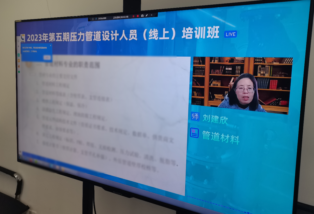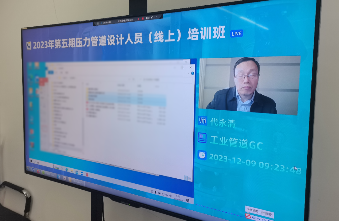 为提升公司压力管道设计人员的技术水平,深入学习压力管道设计最新标准规范,我司参加了中国石油和化工勘察设计协会于2023年12月9日-11日举办的2023年第五期压力管道设计和审批人员(线上)培训班,配管室(总部和成都分公司)的设计人员利用周末时间同步参加了培训听课,培训主要内容为GC工业管道设计、管道应力分析、管道材料,授课老师均为行业内专家。