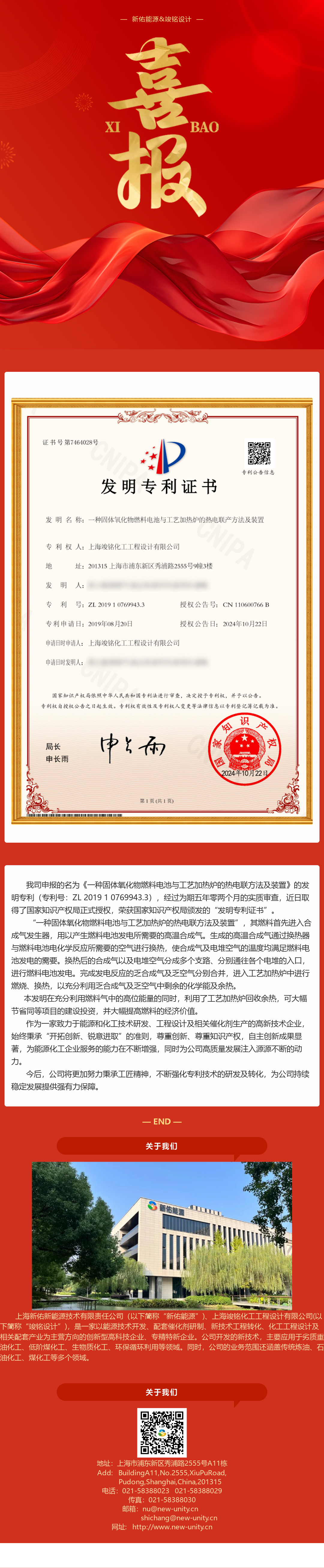 【8025威尼斯&竣铭】公司再获一项发明专利——《沸腾床反应器》